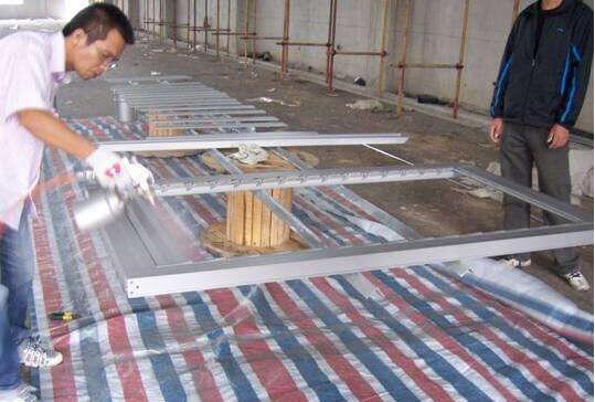 (4)、采用噴涂方式噴涂刷兩道防銹底漆(可選擇環氧鐵紅色防銹底漆、環氧灰白色底漆)